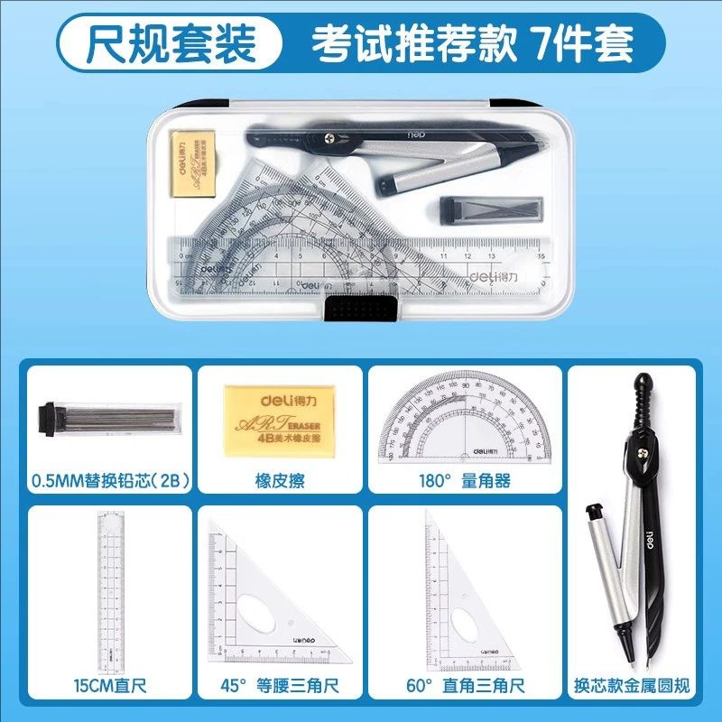得力金属圆规专业绘图画图工具套装切圆器分规机械制图作图大园规