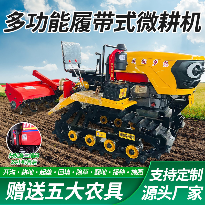 微耕机多功能履带式旋耕机大马力拖拉机农用耕地机水旱两用乘坐式