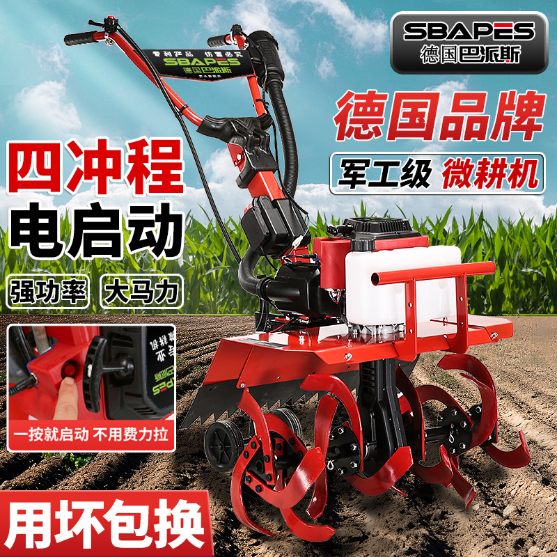 多功能微耕机电启动小型犁地汽油耕地机家用打田机农用翻土旋耕机