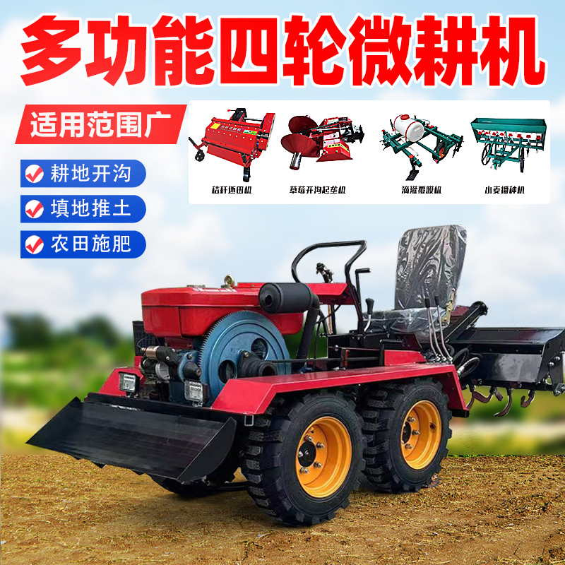 ll新款四驱微耕机旋耕机农用小型耕地机多功能拖拉机四轮柴油开沟