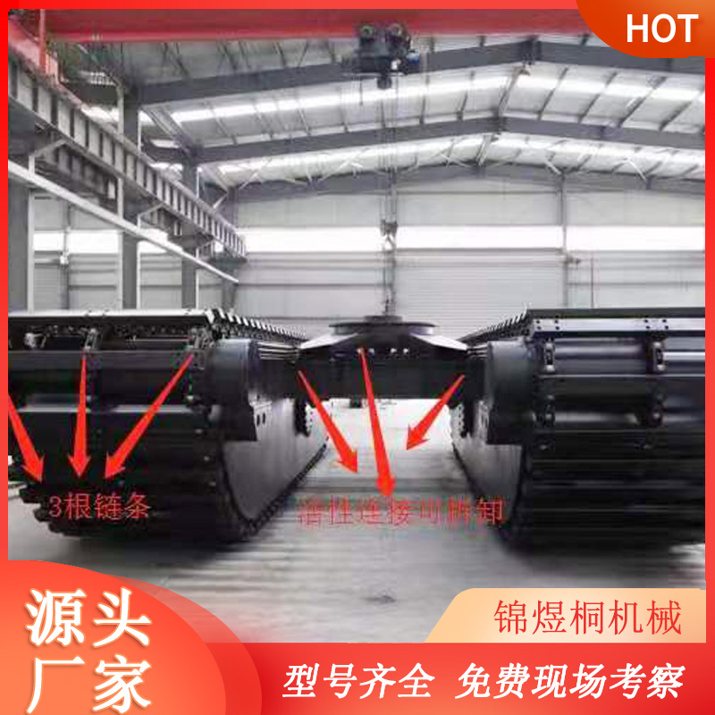 20吨级挖掘机下盘改装 钢制履带式水陆两栖底盘 多功能浮箱改动