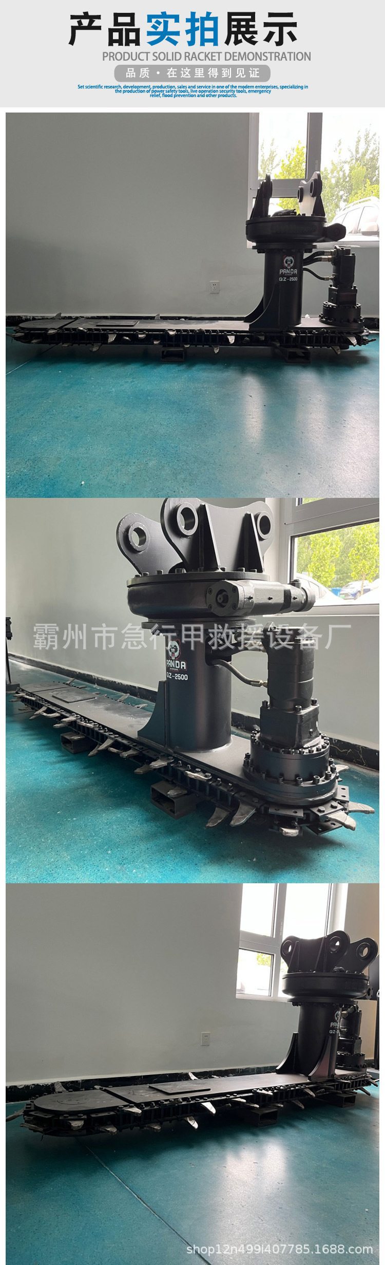 此款产品为挖掘机专用道砟清理工具,装配挖掘机上对道床道砟进行清理作业,通过进口大扭矩马达带动免维护链条,链条上装置超耐磨的合金刀具,对道床道砟进行连续清理作业,清理出来的道砟整齐的堆放到铁路的一侧,大型的清理道砟车开启费用高,人工清理费时费力,使得此款产品成为完美的替代者,现金的技术,完美刀具排列,使得道砟的清理及更换更加简单高效,提高了施工速度,节省了大批的劳动力,“一人一机”就可完成施工作业,真正意义上的铁路施工好帮手。
